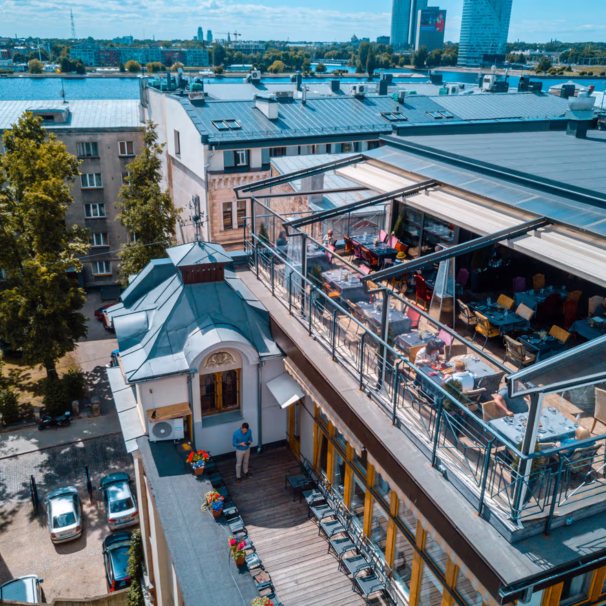 Then there’s the wine. Sandis Solims’ curated list is a love letter to Bordeaux, Burgundy, and Champagne – a concise, classic collection that never overwhelms. Whether you’re chasing grower gems, celebrated French houses, or hidden mature surprises, the terrace setting turns every sip into a rooftop moment. Food, wine, and the Old Town skyline – some views demand a toast.
